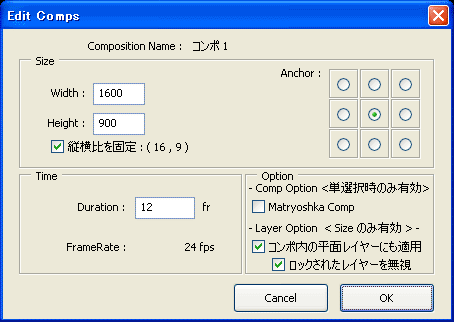 すでにご存知の方も多いとは思いますが、初心な困ってる方もいるかと思いますので、 今回はAE CS4 のスクリプトについての補足をしたいと思います。 新規にコンポを作成するスクリプトで "addComp" があります。 addComp("コンポ名",横幅,縦幅,ピクセル縦横比,コンポの秒数,フレームレート) という具合に指定すると、新規コンポが作成できるのですが、こいつが問題あるのです。 これはフレーム表示で使用していることで起きるの問題なのですが、指定したフレーム数が フレームレートできれいに割り切れないと、任意のコンポ尺になりません。 試しにコンポ尺が " 1" 、フレームレート " 24 " のコンポを作成して下記のスクリプトを 実行してみるとわかると思います。 ※作成したコンポをプロジェクトウインドウで選んだ状態で実行 //選択中のコンポの尺を取得 compDur = app.project.activeItem.duration; //選択中のコンポのフレームレートを取得 fRate = app.project.activeItem.frameRate; //新規作成 testComp = app.project.items.addComp("テストコンポ",1600,900,1,compDur,fRate); これは選択中のコンポと同じ尺、同じフレームレートの新規コンポを作成するスクリプトです。 新規作成した "テストコンポ" をタイムラインで開くと選択したコンポと同じ尺になっていると思います。 しかし!! プロジェクトウインドウ(もしくはコンポジション設定を開く)のデュレーションを見ると、 フレームが1つ多いはずです。 えええええ!?、ヽ(  ̄д ̄;)ノ ヤッテランネー さて、これを回避する為に、再度コンポ尺を同じ値で指定してやります。 ※上記のスクリプトの最後に追加 //新規作成したコンポの尺を再設定 testComp.duration = compDur; ここでは " テストコンポ " の尺に選択中のコンポ尺を再指定しています。 これで希望通りのコンポが出来ました。 同じ数値を指定しているのに "addComp" の場合は、おかしいぜ!というお話でした。 今回のスクリプトでは選択中のコンポの尺を指定しましたが、任意のフレーム数で指定する時は、 [ 任意のフレーム数 / フレームレート ] (任意のフレーム数 ÷ フレームレート の意) になります。 投票ボタン付けてみました。