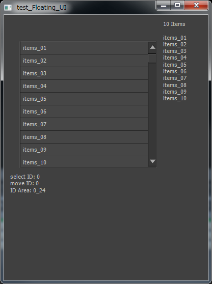以前、 Layer_Manager_test を作った時にも実装したのですが あの時はAE用のアニメーションライブラリ(XP でしか動かなかったケド)が目的だったので 使い回しがしやすいように作り直しました。 概要としては、クリックしたアイコンをドラッグ&ドロップで順番を入れ替える インターフェイスをスクリプトで再現した感じです。 ※実際には右のハイライトのアイコンの上にはマウスカーソルがあります。 (CCのスクリーンショットってマウスカーソルが写らないみたい) スクロールバー実装時のテストも兼ねていたので余計なものもありますが、 一通りちゃんと動くと思います。 (枠外にドラッグした時に合わせてスクロールさせる処理は面倒くさくて入れていません・・・) CS6までのWin版とMac版ではオブジェクトの作成順位とその上下関係が逆になっていました。 ※Macでは作られた順番で下になり、Winでは新しく作られたものほど上になる これでCCになってようやく統一されたことになります。 ホントにこの問題、理解するまでやっかいだった・・・・ ということで、今回のスクリプトはCCのみの対応です。 もし、何かのスクリプトを作る時に実装してみても面白いと思いますよ~ ※使用した際の不具合や事故については自己責任でお願いしますね test_Floating_UI.zip ← 右クリックでDL =動作確認= windows7 & MacOS 10.8 AfterEffects CC ちなみに、Macだとハイライトのアイコンがチラチラしたりします。 アイコンドラッグ時の座標判定を精査したりなどなど、見直す必要があるかもしれません。 投票ボタン付けてみました。 PR |